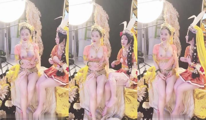 外景拍摄艺术照的漂亮妹妹,衣服有点偏小,动作大一点两个奶头都走光了
