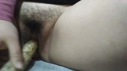 农家媳妇老公不在家,就随地拿了根山药解痒骚穴!
