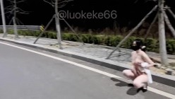 SM露出爱好者『洛可可』路边放荡性母狗爬行,对车辆露出屁股和肛塞尾巴,请过往车辆照亮雪白的屁股和小菊花夹着的尾巴